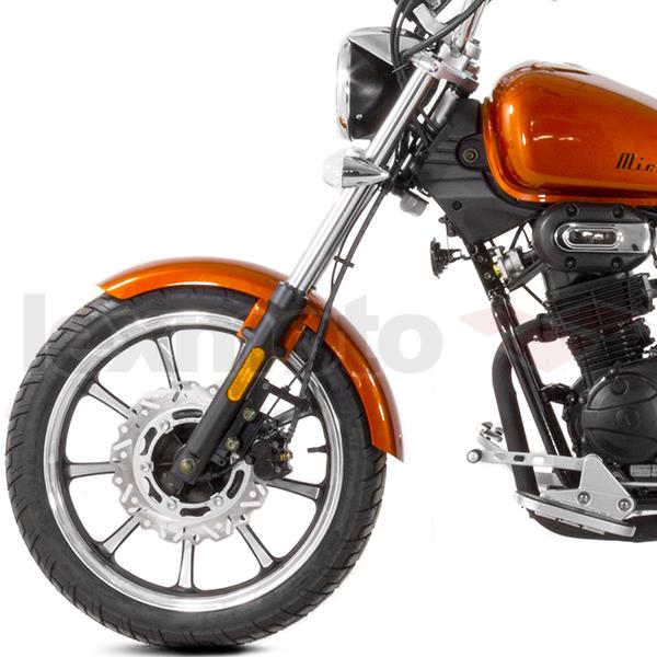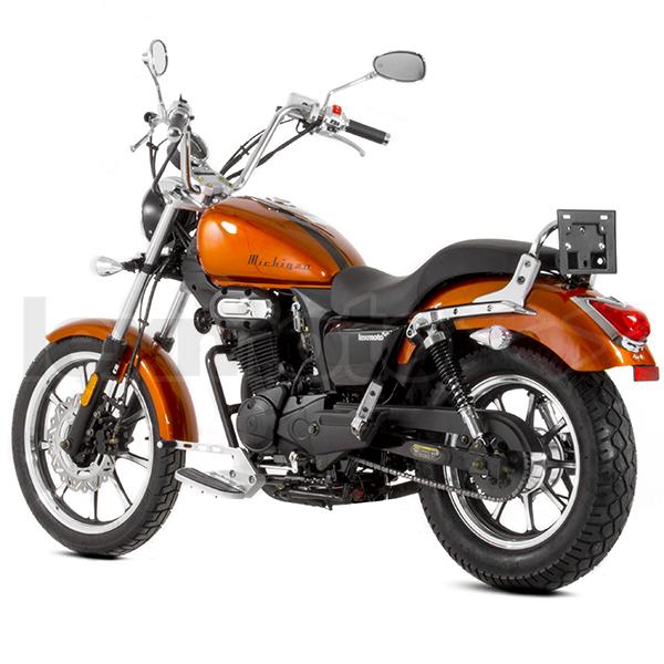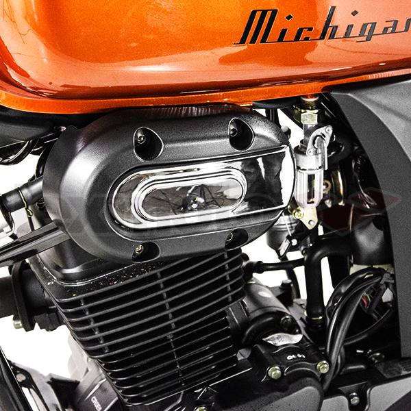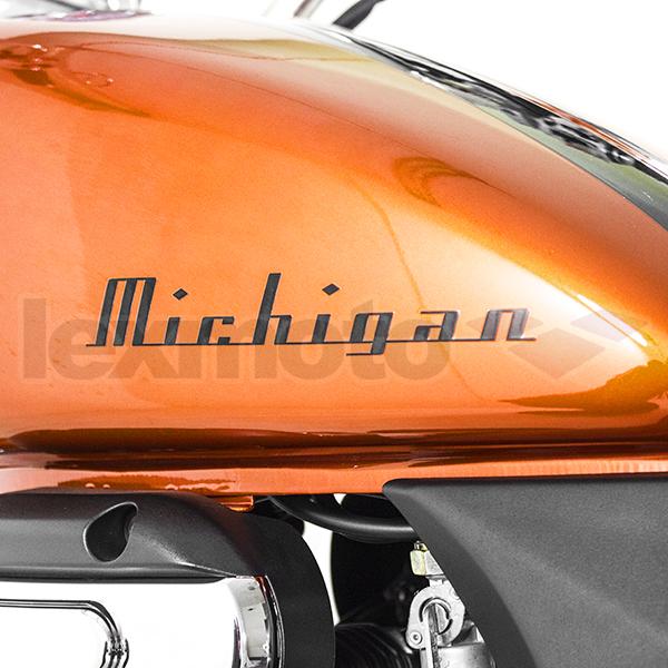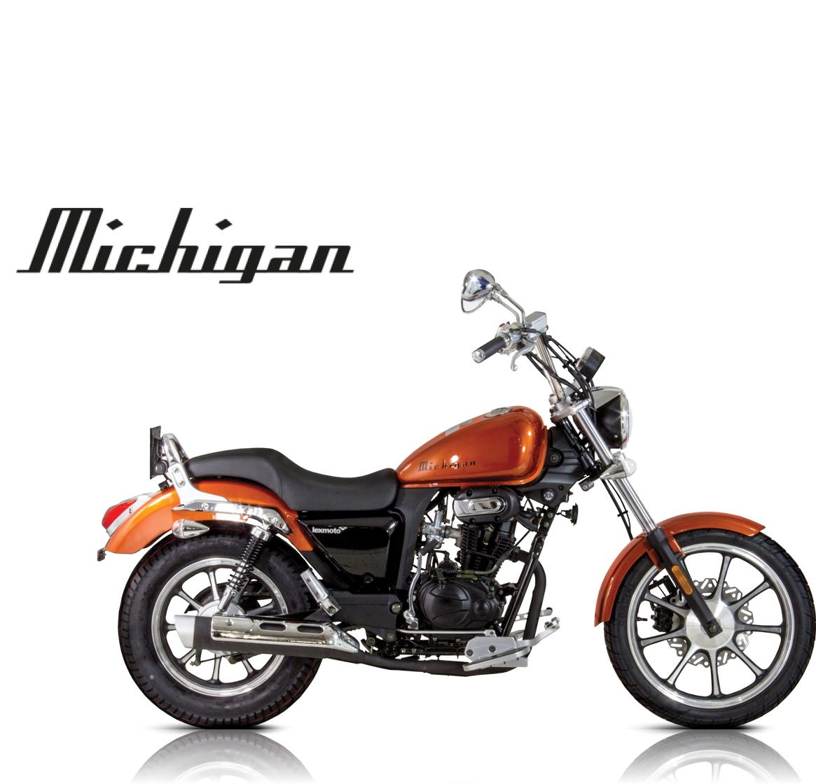 Take to the open road in style on the Michigan. Offering superior build quality from a manufacturer already associated with the Harley Davidson brand, the Michigan provides a fantastic package for the learner legal market. The motorcycle is powered by a 4 stroke, single cylinder engine fitted with a balance shaft for the optimum mix of comfort and performance. A true cruiser with low slung seat, footboards and high bars, this bike crosses modernity with tradition adding electronic fuel injection, combined braking system and bright LED indicators. The details and finishing touches on the Michigan highlight the superior build quality. Head out on the Michigan and feel how good two wheels can be.